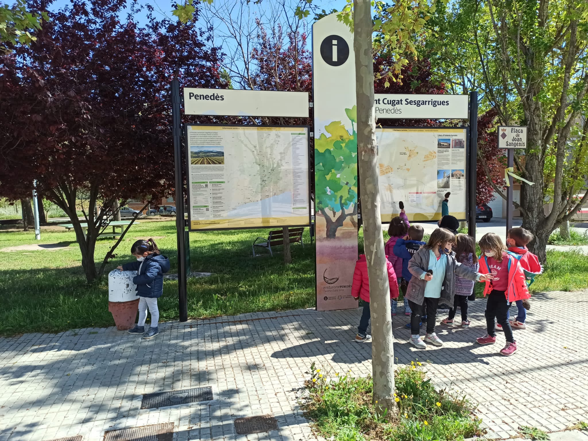 ESTEM FENT SORTIDES PER A CONÈIXER MILLOR EL POBLE, I ÉS QUE EN UNA DE LES PRIMERES SORTIDES ENS VAM ADONAR QUE HI HAVIA CARTELLS AMB ELS NOMS, AIXÍ PODÍEM SABER COM ES DEIA EL CARRER. TAMBÉ VAM VEURE, QUE LES CASES TENEN NÚMEROS, I ALGUNES NOM, O UN GRAN MAPA DEL MUNICIPI I DE LA COMARCA.