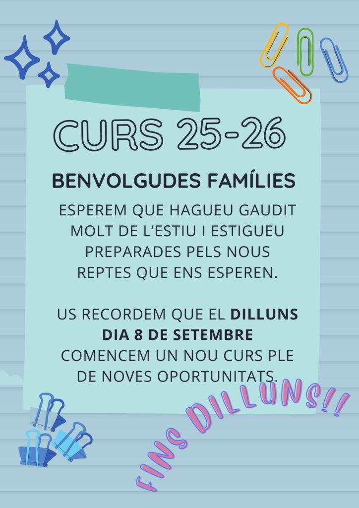 - TELÈFON DE CONTACTE (PARE I MARE)… Llegeix més»