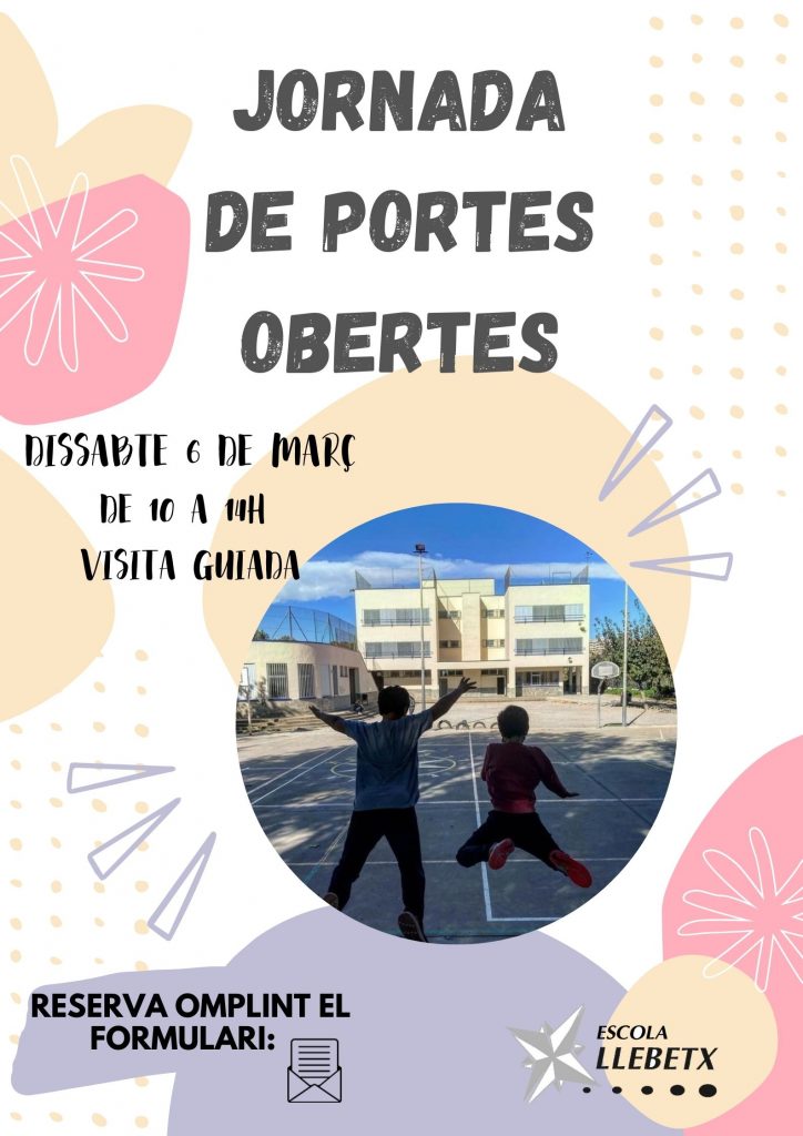 És per això que hem organitzat sis sessions de portes obertes en dissabte, de durada màxima d’una hora. Clicant sobre el cartell informatiu us dirigirà al formulari d’inscripció on us podreu inscriure per la visita presencial i per demanar l’enllaç del vídeo on s’explica el Projecte Educatiu. La sessió presencial servirà per visitar els diferents espais i per poder conèixer les diferents metodologies que ens defineixen com a escola. Al llarg de la visita, anirem resolen tots els vostres dubtes.