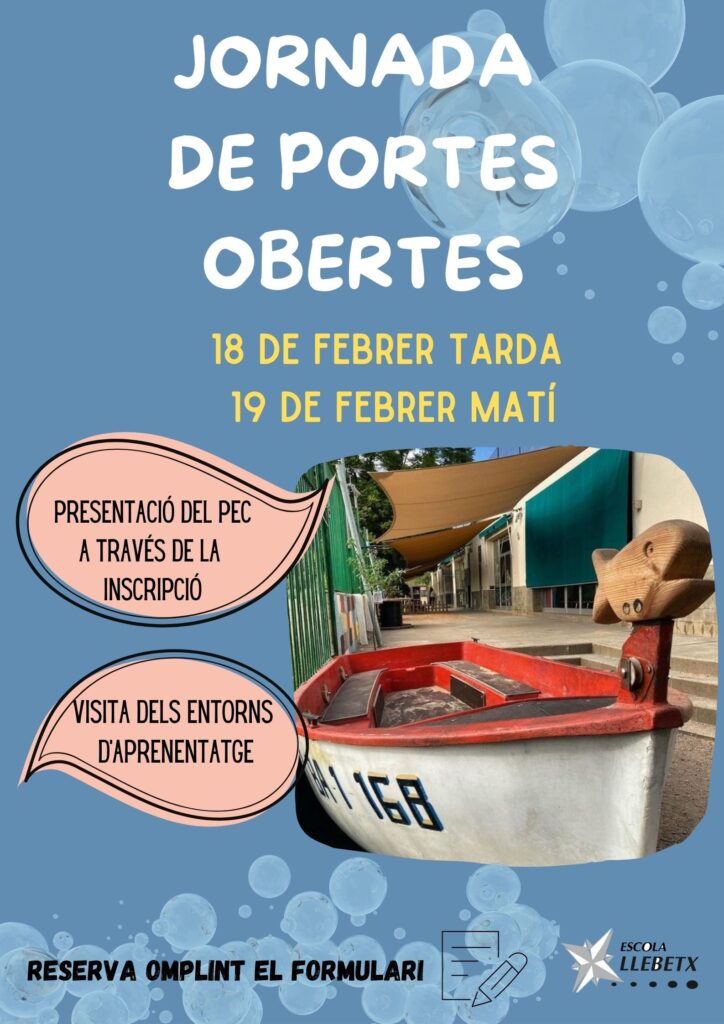 És per això que hem organitzat diferents sessions de portes obertes en divendres i dissabte, de durada màxima d’una hora. Clicant sobre el cartell informatiu us dirigirà al formulari d’inscripció on us podreu inscriure per la visita presencial i per demanar l’enllaç del vídeo on s’explica el Projecte Educatiu. La sessió presencial servirà per visitar els diferents espais i per poder conèixer les diferents metodologies que ens defineixen com a escola. Al llarg de la visita, anirem resolent tots els vostres dubtes.