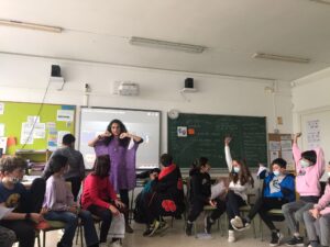A les classes de quart, cinquè i sisè hem iniciat la sessió amb una cançó de la Clara Peya “Oceanes” que fa un homenatge a les dones (la podeu trobar al llistat de cançons que hi ha al final de la notícia). Després hem llegit el conte “Violeta & Co canvien el mon“, on el mateix alumnat ha participat llegint una petita part de la lectura que parla sobre els micromasclismes. I amb l’ajuda d’una lupa han fet un debat sobre els micromasclismes.