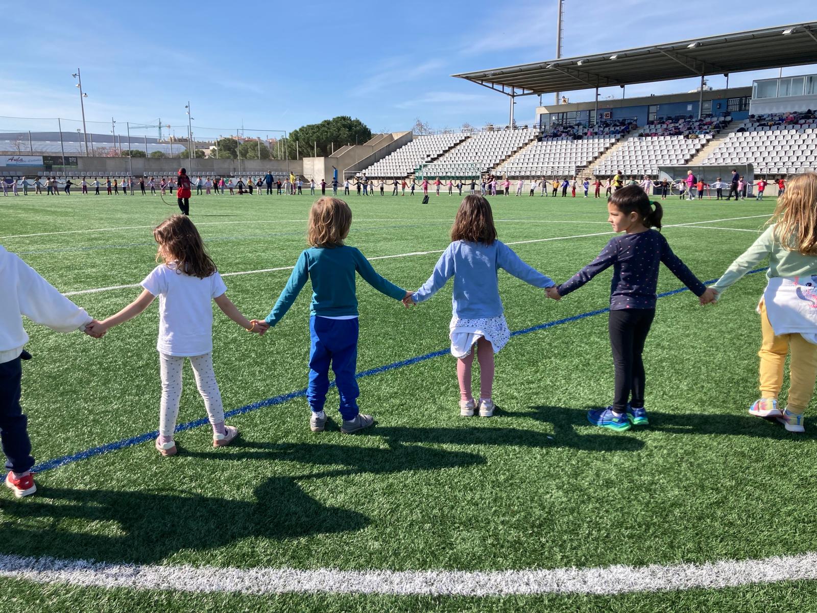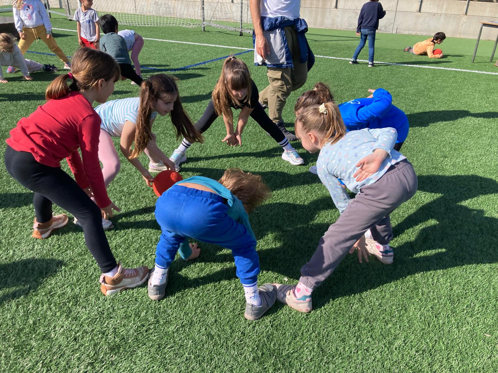 L’alumnat de primer ha participat en una trobada amb altres escoles al camp de futbol municipal per compartir jocs de diferents parts del món.