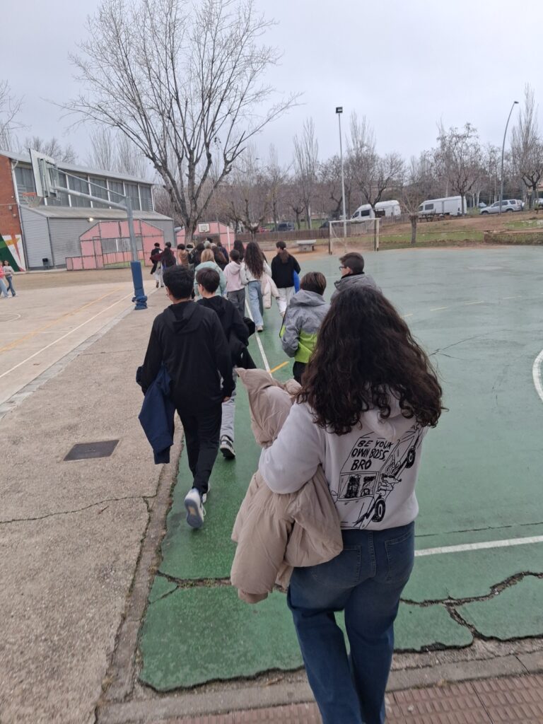 Després vam sortir a fora i ens vam ajuntar tots els grups per anar-nos-en cap a l’escola.