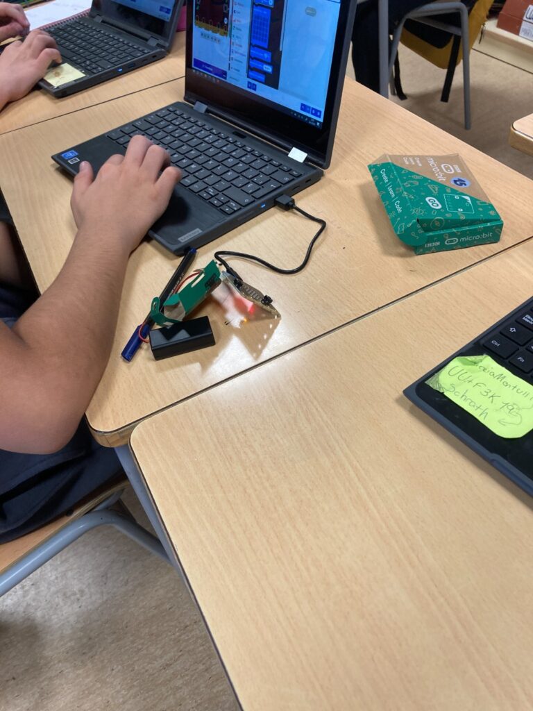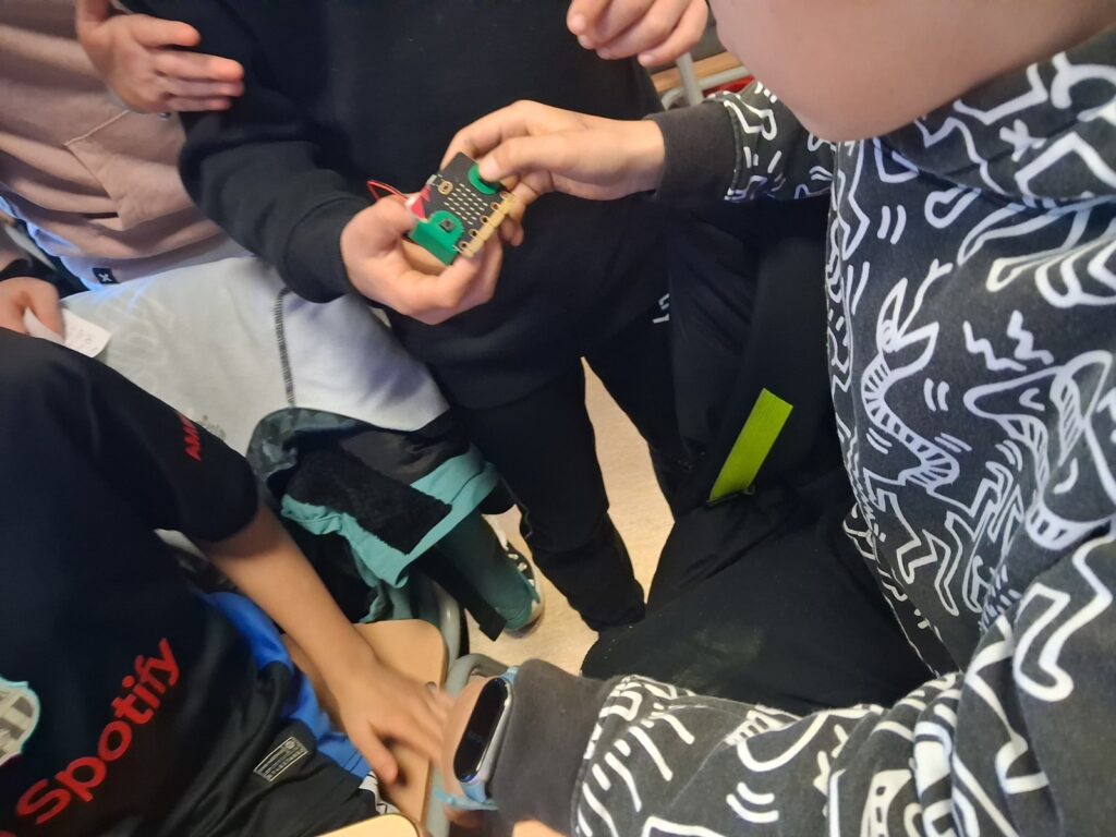 A les últimes setmanes hem programat la Micro: bit perquè sigui un podòmetre (és un objecte que ens compta les passes). Amb això vam anar des de la font del pati fins a la tanca de la sortida, per comprovar si les mides del Google coincidien amb la realitat. I així era!! Així vam poder calcular a quina distància vivíem de l’escola però en línia recta.