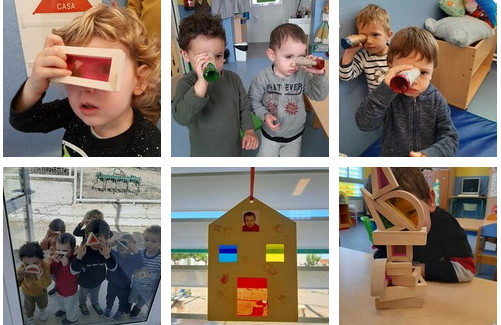 Veient les coses de diferents colors a través de paper de cel.lofana i els blocs de colors