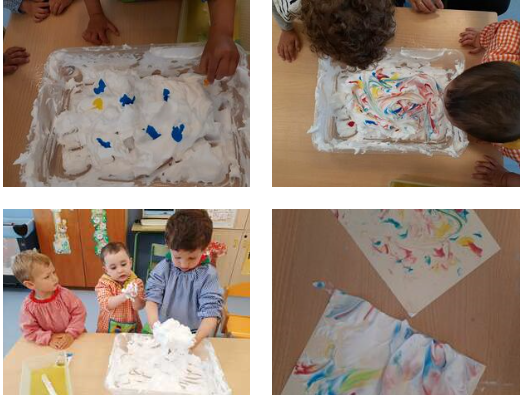 Després van estampar paper amb escuma d´afaitar i colorant alimentari