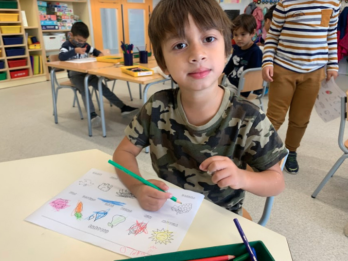 Han après a saludar, les formes geomètriques i ara estan aprenent tots els colors en anglès!