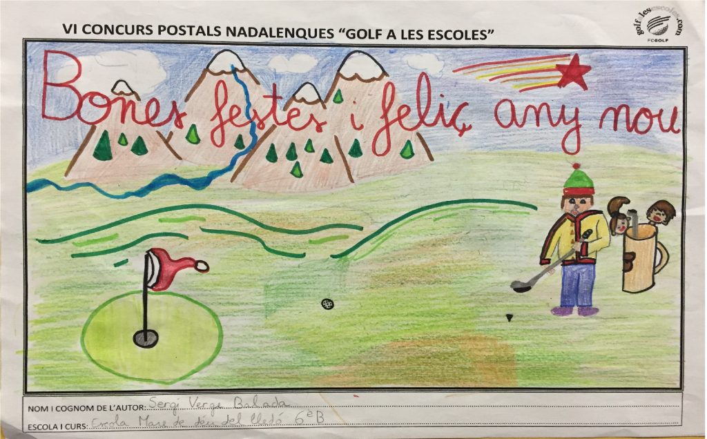 Per segon curs consecutiu, la nostra escola participa al “Programa Golf a les Escoles”. A més de disposar d’un material molt atractiu per la practica del Golf, també es promouen d’altres activitats. Una d’aquestes és un concurs de postals nadalenques on tenim dos alumnes seleccionats