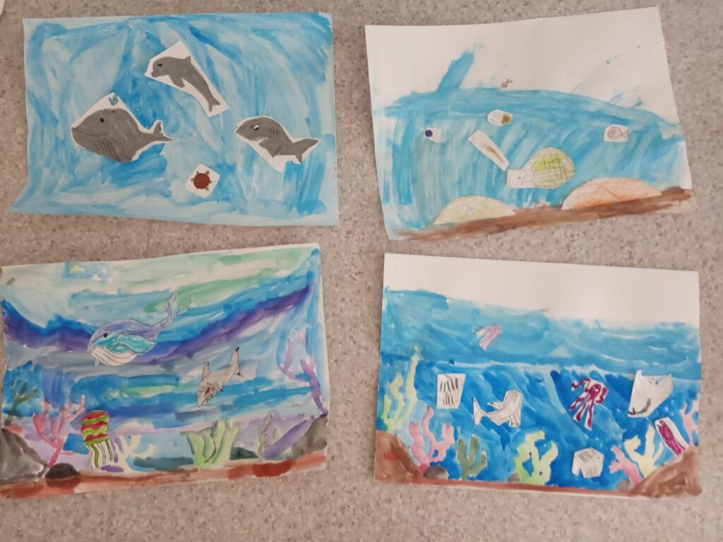 Aquest últim trimestre hem realitzat uns tallers on els alumnes han fet diferents creacions artístiques: un pot de sal de diferents colors, un diari sobre el nostre hort i un dibuix d’un fons marí.