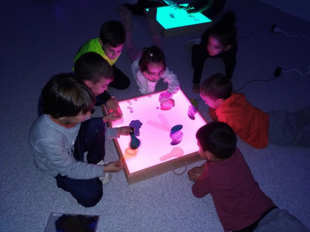 TAULES DE LLUM Feu un comentari / Per Jèssica Llagostera / 4 de desembre de 2019 / General I5 Infantil Portada / I5, taules de llum Els divendres a la tarda l’aula de psico s’enfosqueix i es torna nit. És llavors quan surten les taules de llum i mil jocs per descobrir amb elles.