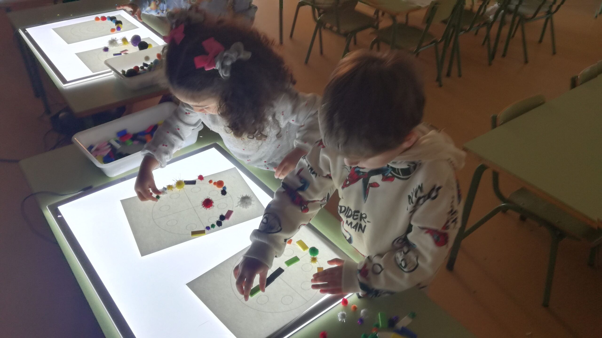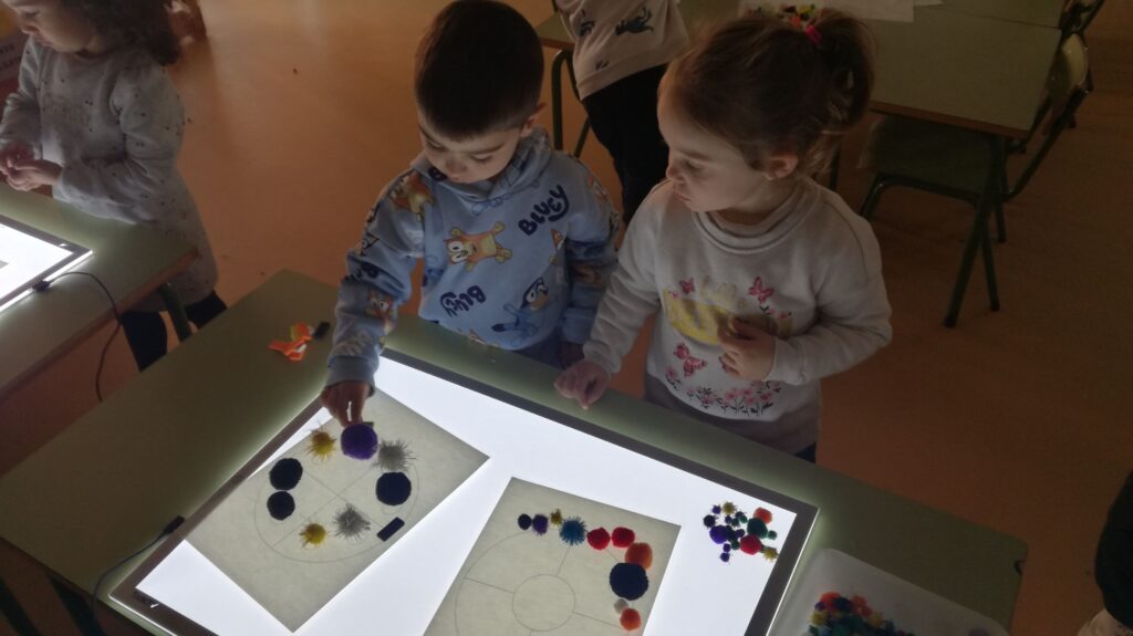 Una de les activitats que hem realitzat els ha agradat molt perquè hem fet servir les tauletes de llum. Els alumnes fent servir diferents materials han anat creant unes precioses mandales.