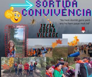El dijous 13 d’octubre vam sortir de l’escola per anar a Òdena Village. Vam sortir les 3 classes Tintins, Petits Princeps i Massagrans. Quan vam sortir carregats amb la motxilla preparats per anar a Odena vam fer parelles. Primer vam parar un munt de vegades fins que vam arribar en un espai del bosc on vam esmorzar.