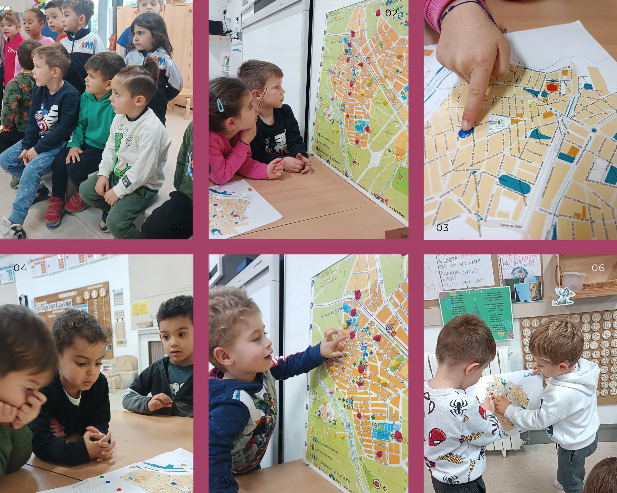 Com que a la ludoteca hem anat més cops, i l’any passat amb el nostre projecte vam sortir força pel carrer, els i les Pinotxos tenen molt clar per quins punts clau hem de passar per anar-hi, i els escrivim darrera del mapa, perquè els Tabalugues no es perdin quan hagin de tornar sols de la ludoteca.