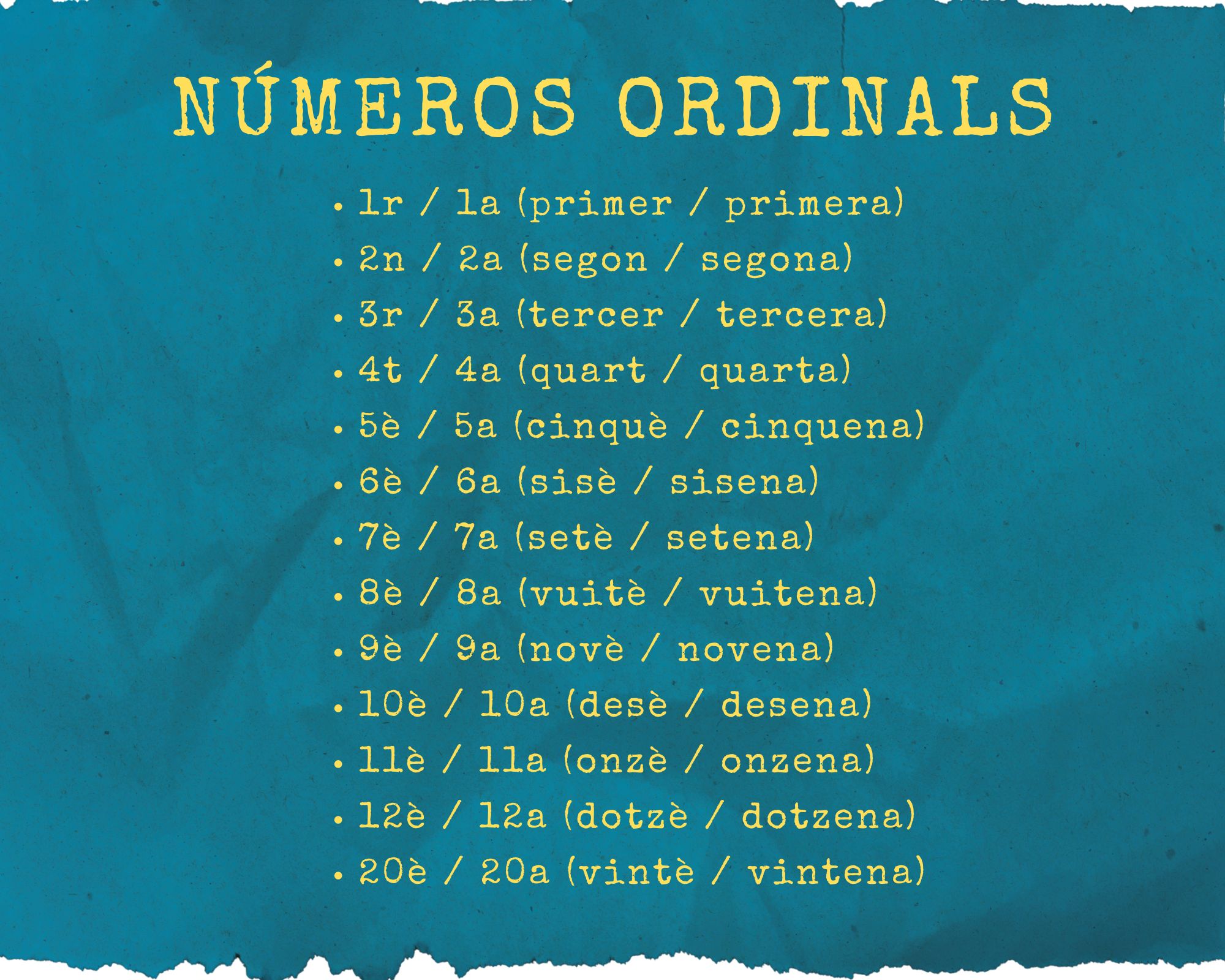 Per acabar, un altre descobriment ha estat la diferència entre els números ordinals, que ens indiquen posició i ordre (com els passos d’unes instruccions) i els cardinals, que són els que fem servir habitualment. Ha estat una oportunitat per aprendre com s’escriuen de manera abreujada, afegint al número l’última lletra del nom de l’ordinal.