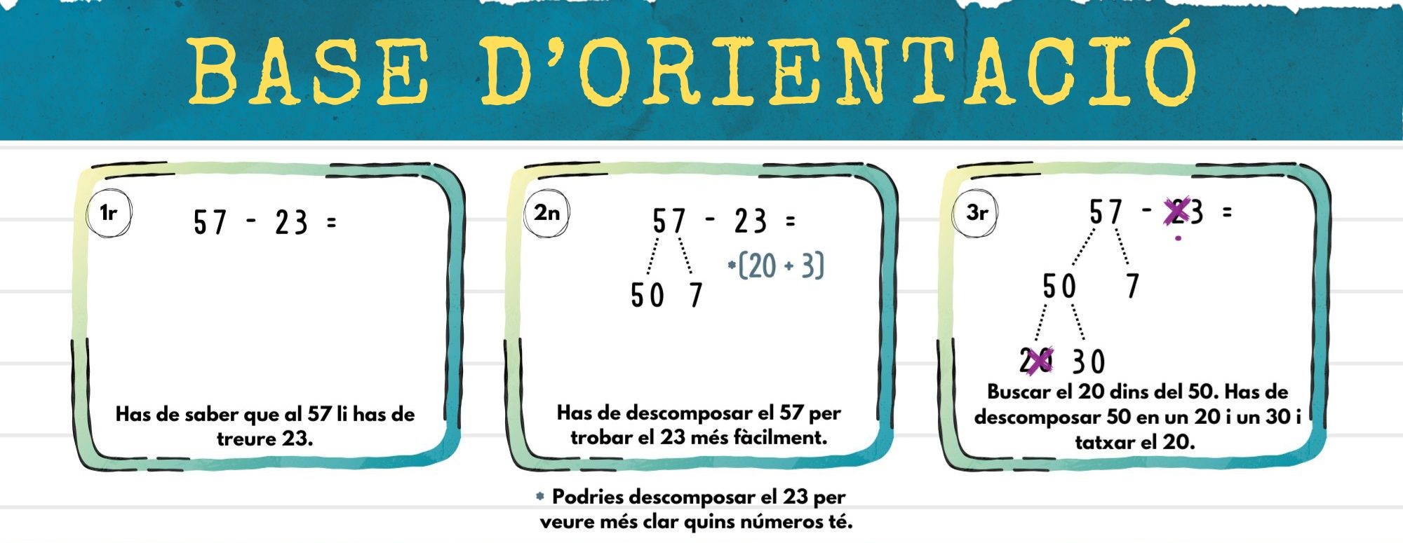 Per a qui no ho conegui, una base d’orientació és un instrument que recull un conjunt d’accions ordenades per resoldre un problema o realitzar una tasca. Aquesta eina ens ajuda a comprendre i interioritzar coneixements i procediments, de manera que els puguem retenir en la memòria i activar-los quan calgui.