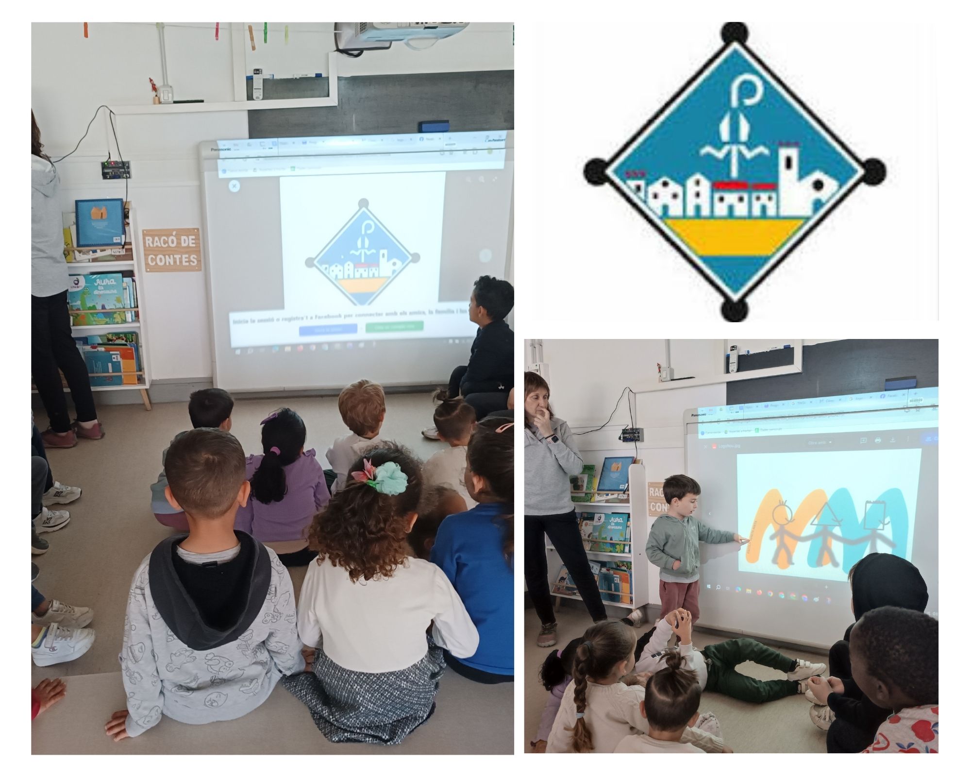 Justament en el moment que estem parlant del logo, entra el Toni Tostado pe portar-nos un material i un nen es fixa que en el seu jersei també hi ha el logo. El Toni ens explica que ell treballa per l’ajuntament i que per això porta el logo. Li preguntem que significa però tampoc ho sap, però ens diu que ja ho preguntarà.