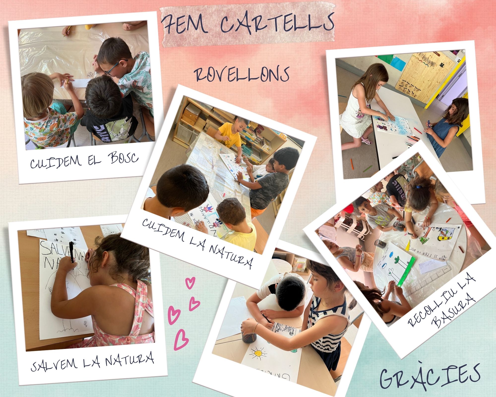 Un cop ho van poder veure i fer fotos vam començar la sortida al bosc per poder netejar la brossa. Vam anar cap a Can Titó, vam esmorzar i ens vam posar mans a l’obra. La veritat és que vam omplir unes quantes bosses de deixalles i de veritat, estem molt agraïts de l’ajuda que ens van proporcionar els pares, mares, germans, germanes, avis i àvies que van poder venir tot i la calor que vam passar.