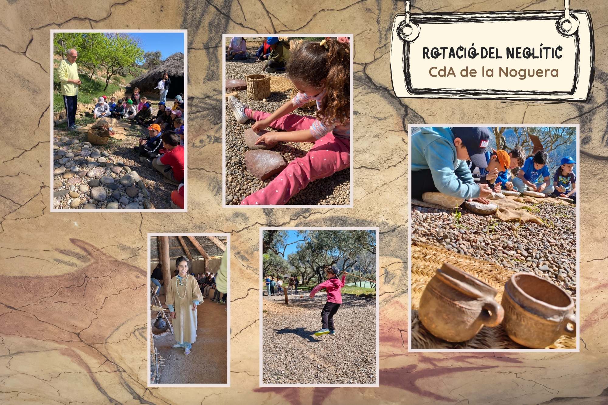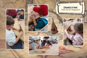 “Al CdA de La Noguera ens van explicar que al paleolític caçaven en petit grup, i quan es menjaven el que havien caçat, ho aprofitaven tot. És a dir, que els intestins els feien servir com a cordes, els ossos per fer eines, i la pell per fer abrics i olles de pell. També ens van ensenyar que a la cuina guardaven les coses que els hi servirien per al futur. A la caça utilitzaven diferents eines, la llança, l’arc i la fletxa i moltes tècniques més. Ah! I ens van explicar que les dones també caçaven!” Documentat per Sergi, Alguer i Nil Cristóbal.