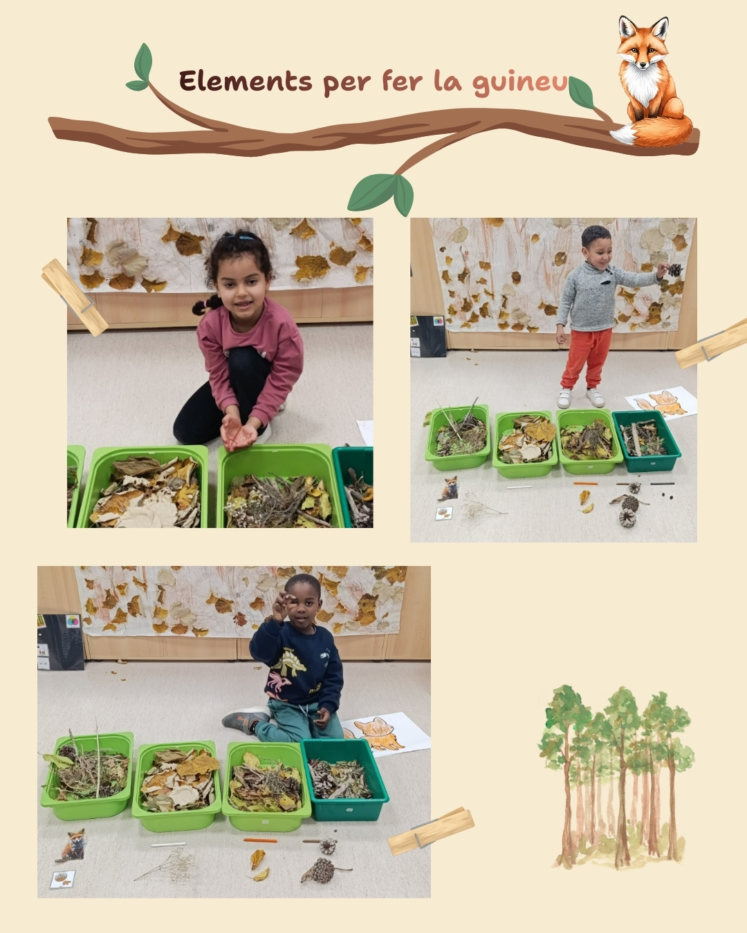 Ara només queda posar-nos en marxa i començar a construir la nostra guineu del bosc, feta amb mans petites, grans idees i molta il·lusió.