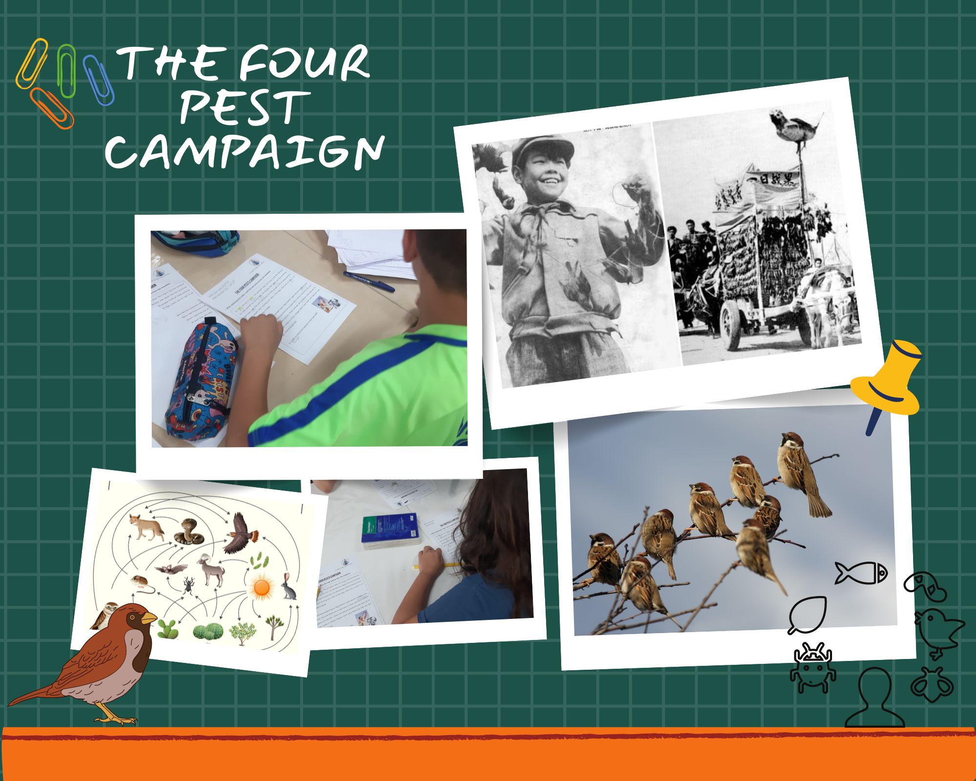 Then then watched a video about a real event that happened in China in 1958, the four pest campaign. Following the orders of the president, Chinese people killed ALL the sparrows in China. Do you know what happened? Ask Tintins!