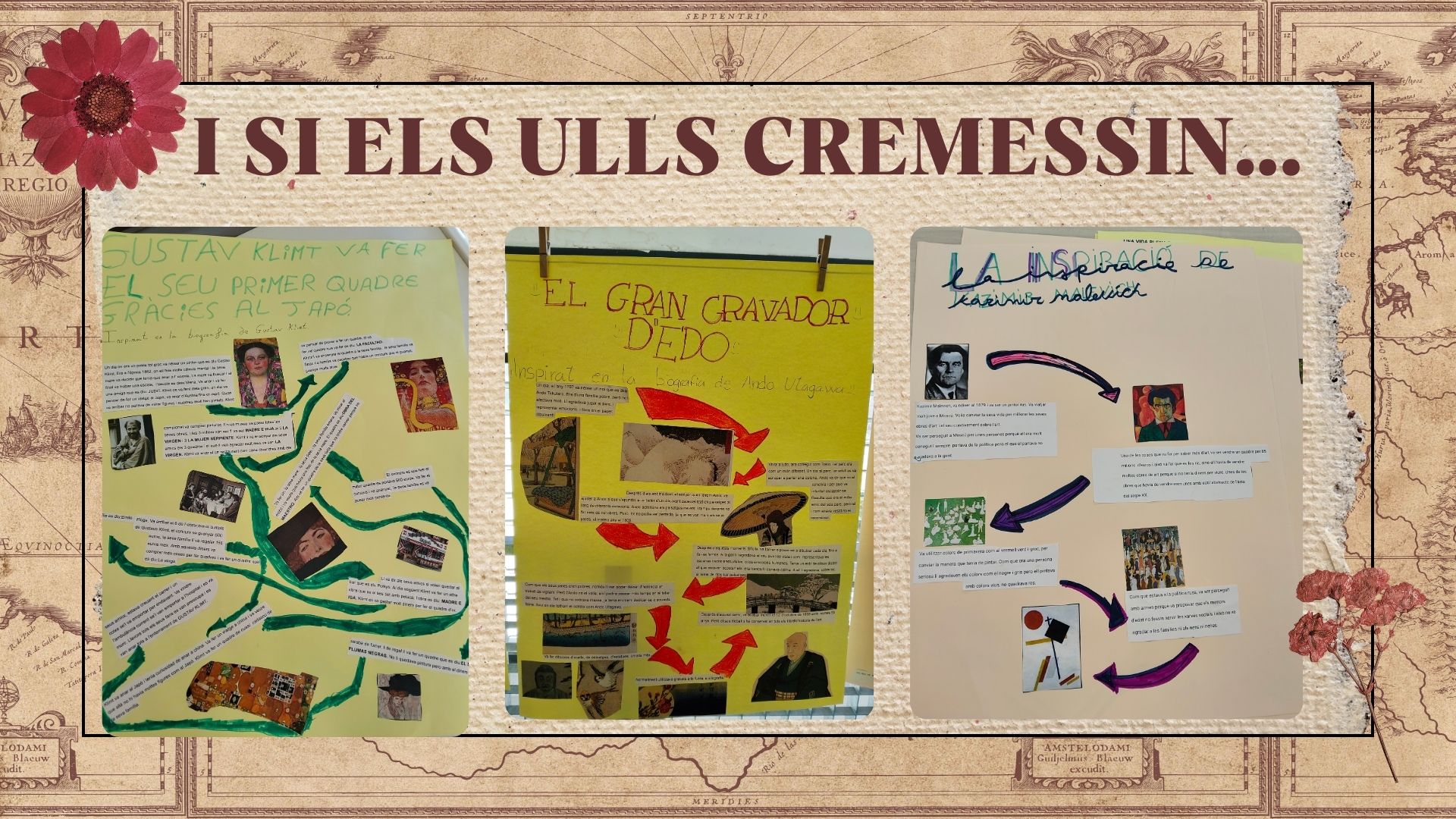 De la feina de cerca i tractament de la informació on vam descobrir la vida i l’obra de 27 artistes plàstics hem passat a confegir unes històries de ficció dignes de tot escriptor novell. Aquesta proposta forma part del nostre treball al voltant del fet d’escriure, a les acaballes del projecte Viatjant pels mons de Roald Dahl.