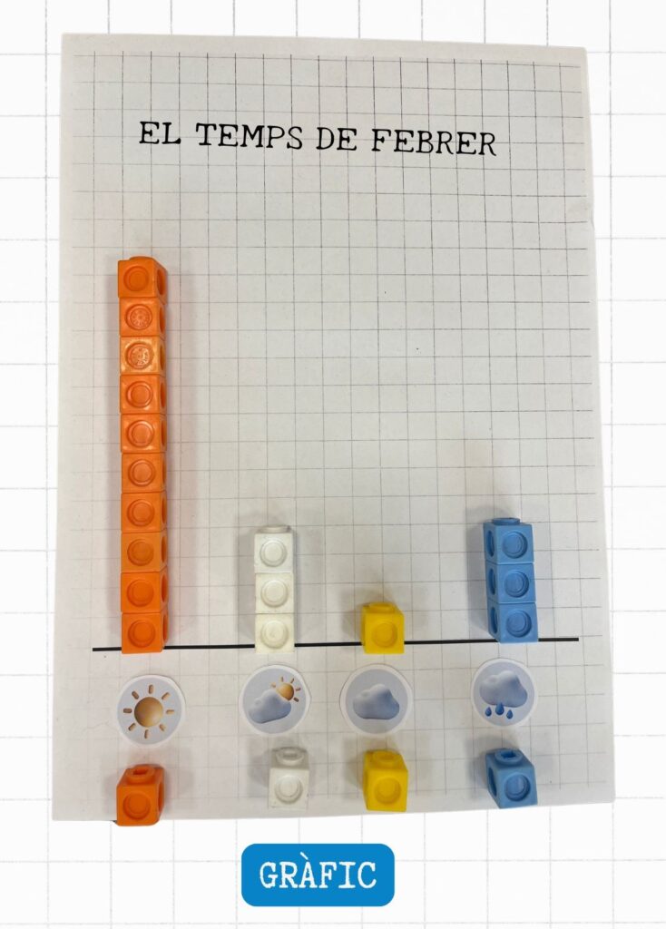 Després vam registrar les quantitats en una taula i les vam representar amb torres de policubs, construint així el nostre primer gràfic.