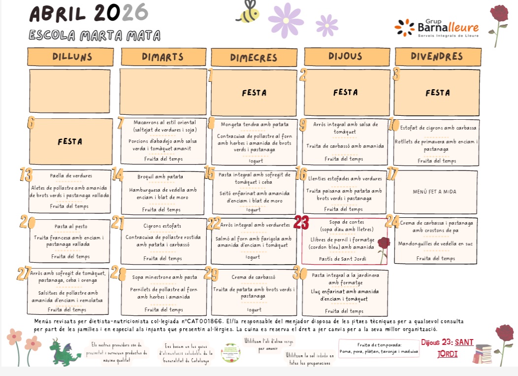 30/12/25Compartim amb vosaltres algunes de les activitats que hem fet a l’escola durant el mes de desembre. Hem gaudit d’una sortida al parc per buscar el Tió, l’hem anat alimentant fins a fer-lo cagar, hem decorat l’arbre de Nadal de l’escola i hem assistit a… Llegeix més»