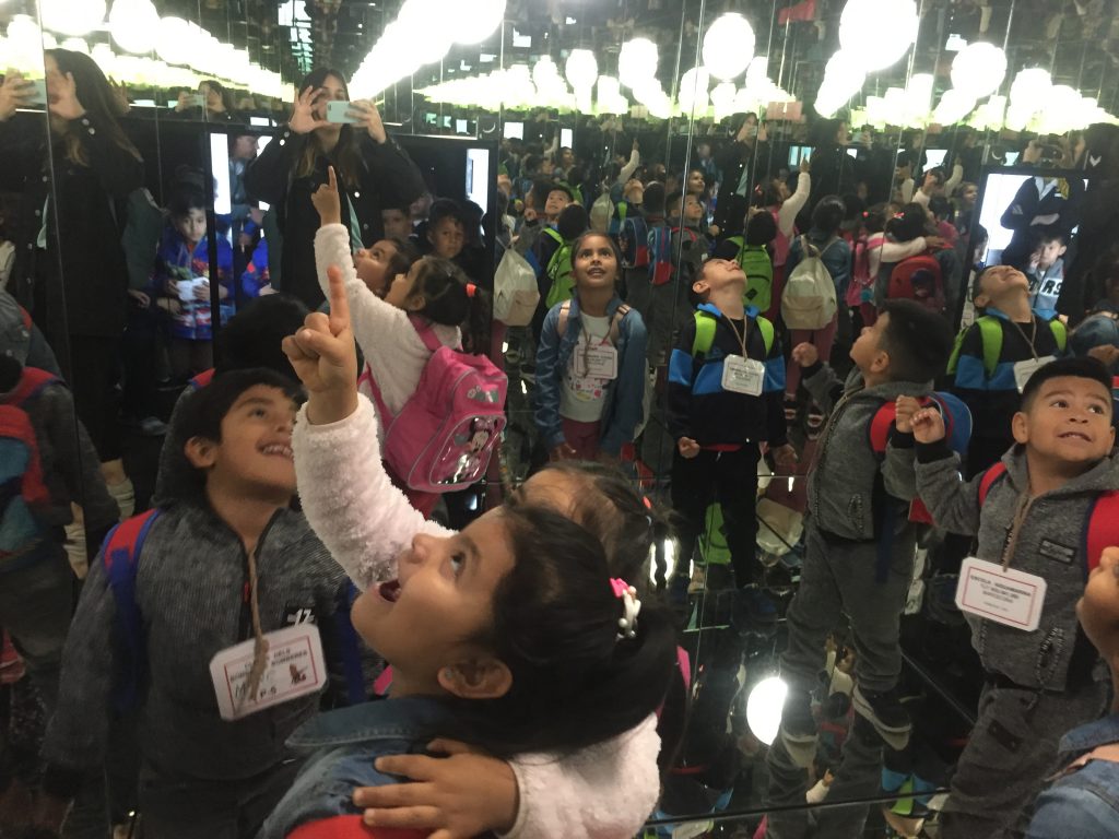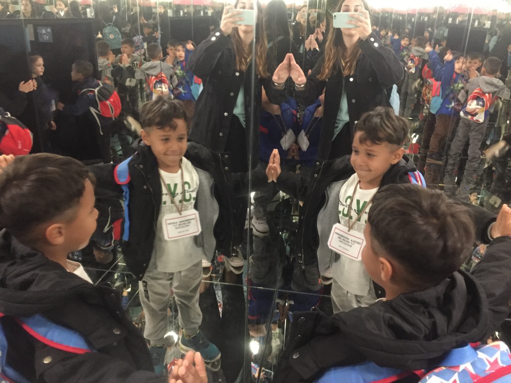 També vam tenir l’oportunitat d’entrar a l’exposició dels miralls!! Ens van encantar ja que ens vam poder veure reflectits en diferents tipus de miralls que ens oferien diferents efectes òptics. En alguns ens veiem més grassos, en els altres més prims, altres ens veiem per duplicat, inclús vam poder passar per un túnel ple de miralls!!