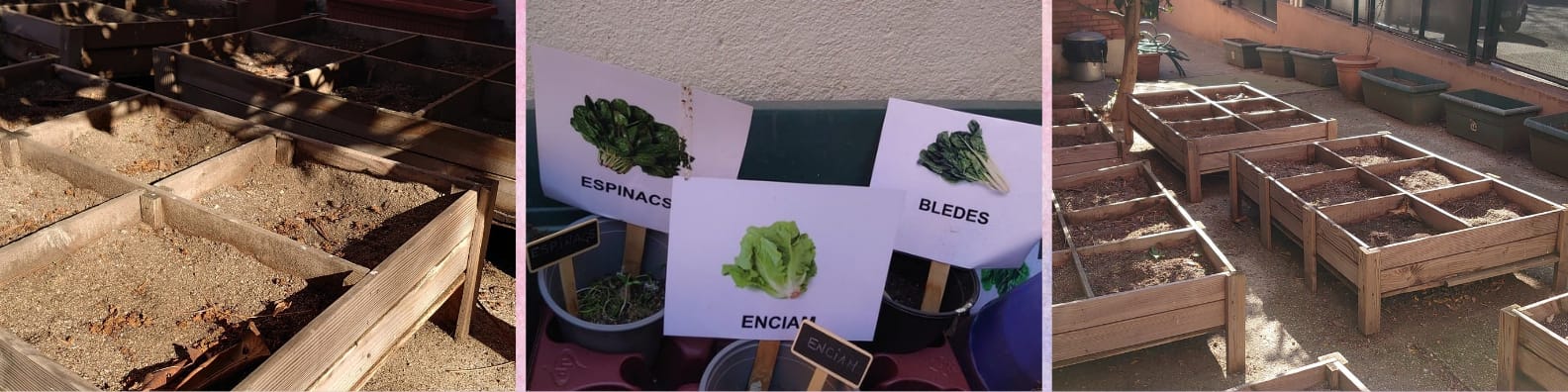 El ritme de l’activitat en aquest espai el marca la natura. Hi participa tota l’escola, realitzant tot el procés des de la preparació de la terra fins a la recol·lecció dels vegetals i dels fruits.