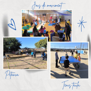 Primerament, la gent gran, va preparar diferents activitats per activar el cos i fer activitat física. A la segona trobada, van ser els infants els que van preparar petits reptes motrius.