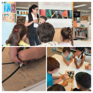 Els infants de 2n, de la classe d’Amaury Guichon, han realitzat un taller a la biblioteca Esteve Paluzie. La Maria José els va va ajudar a obrir la mirada en l’anàlisi dels contes il·lustrats. A través prediccions i comprovacions, van analitzar en grup un conte il·lustrat d’Ed Young, “Set ratolins cecs”. Vam parlar també de la importància de la relació entre la part i el tot. I finalment ells li van explicar a la Maria José com havien treballat ells la creació dels seus contes il·lustrats de Sant Jordi.