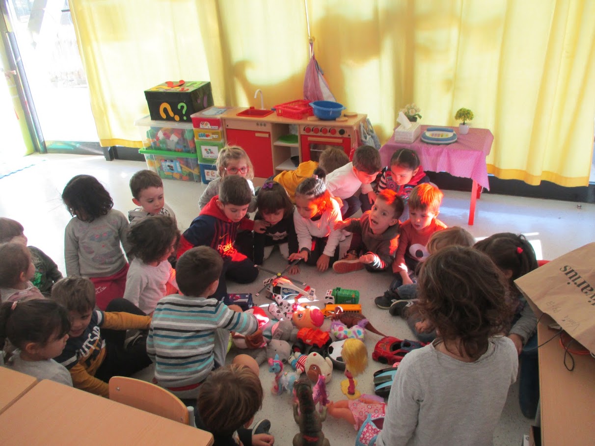 P3, P4 i P5. Tarda amb les joguines de Nadal Feu un comentari / Per Infantil / 18 de gener de 2019 / Festes Inicial (1r i 2n) Petits (EI3, EI4 i EI5) Portada / EI 3, EI 4, EI 5, joguines, Nadal El passat divendres vam portar a la classe una joguina dels regals de Nadal i Reis per a compartir amb la resta de companys i companyes. Ens ho vam passar super bé!!