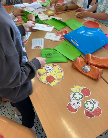 En un dels racons treballem les fraccions fent pizzes amb diversos materials! Fins i tot alguns han decidit posar-hi pinya!