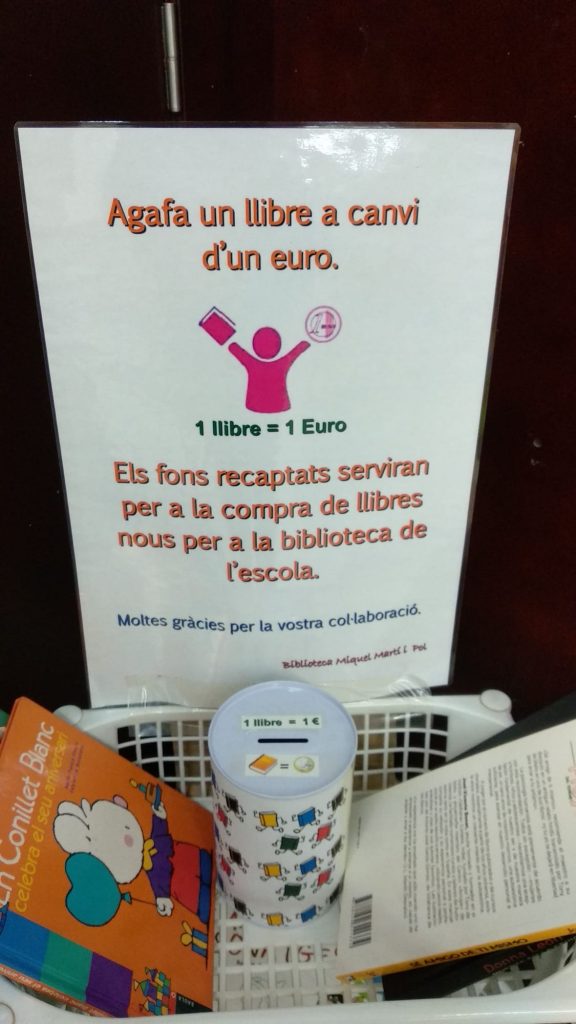 Hem posat en funcionament tres propostes interessants amb l’objectiu d’animar a llegir a tota la comunitat educativa (famílies, alumnes i mestres). Al vestíbul de l’escola trobareu un carro que té una guardiola amb aquesta informació: “Agafa un llibre a canvi d’un euro. Els fons recaptats serviran per a la compra de llibres nous per a […]