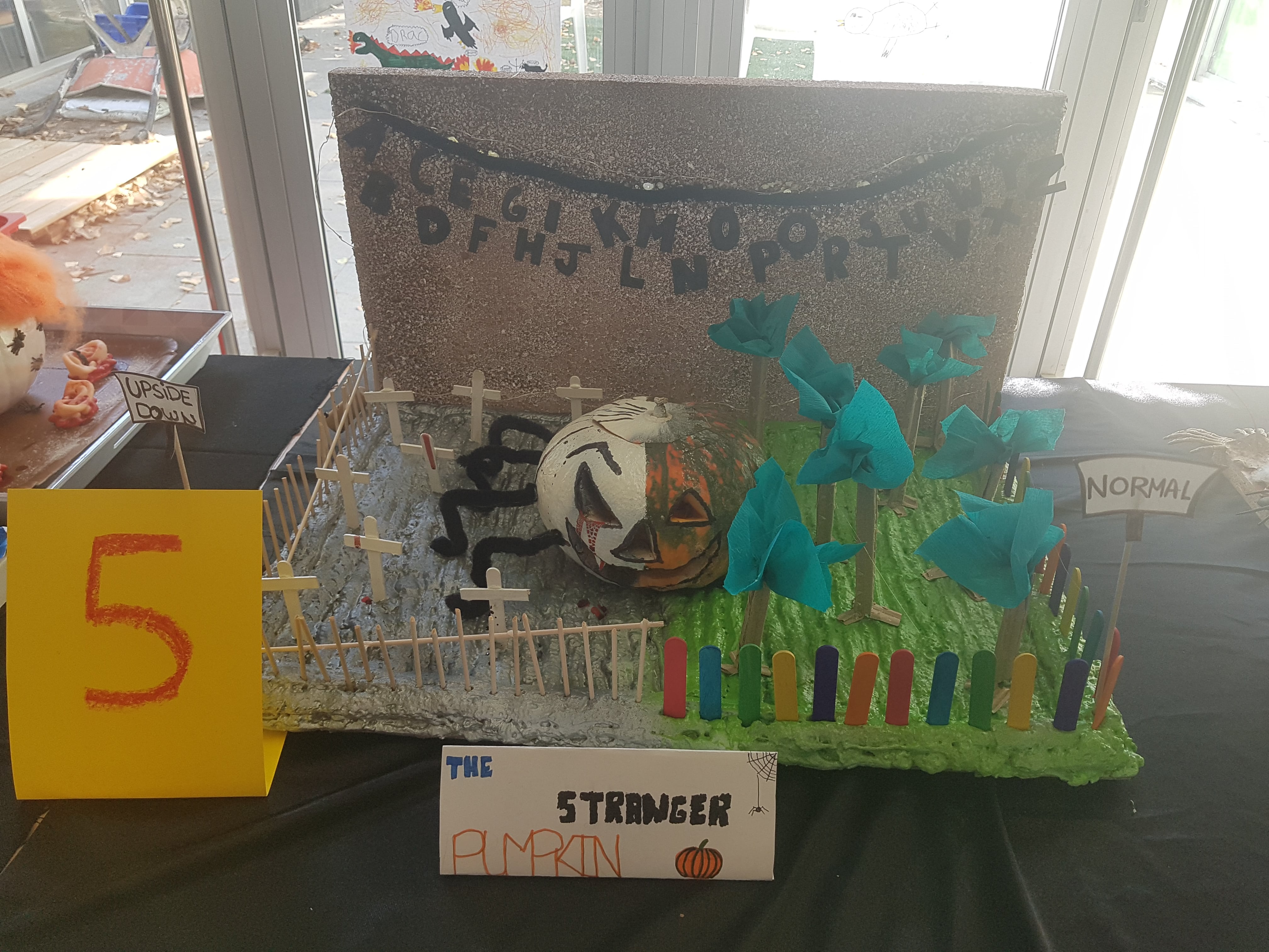 Primer premi : Carbassa n. 5 amb 92 vots. Es diu : STRANGER PUMPKIN, feta per Jana Cardenas, Judith de Haro i Carla Escamilla