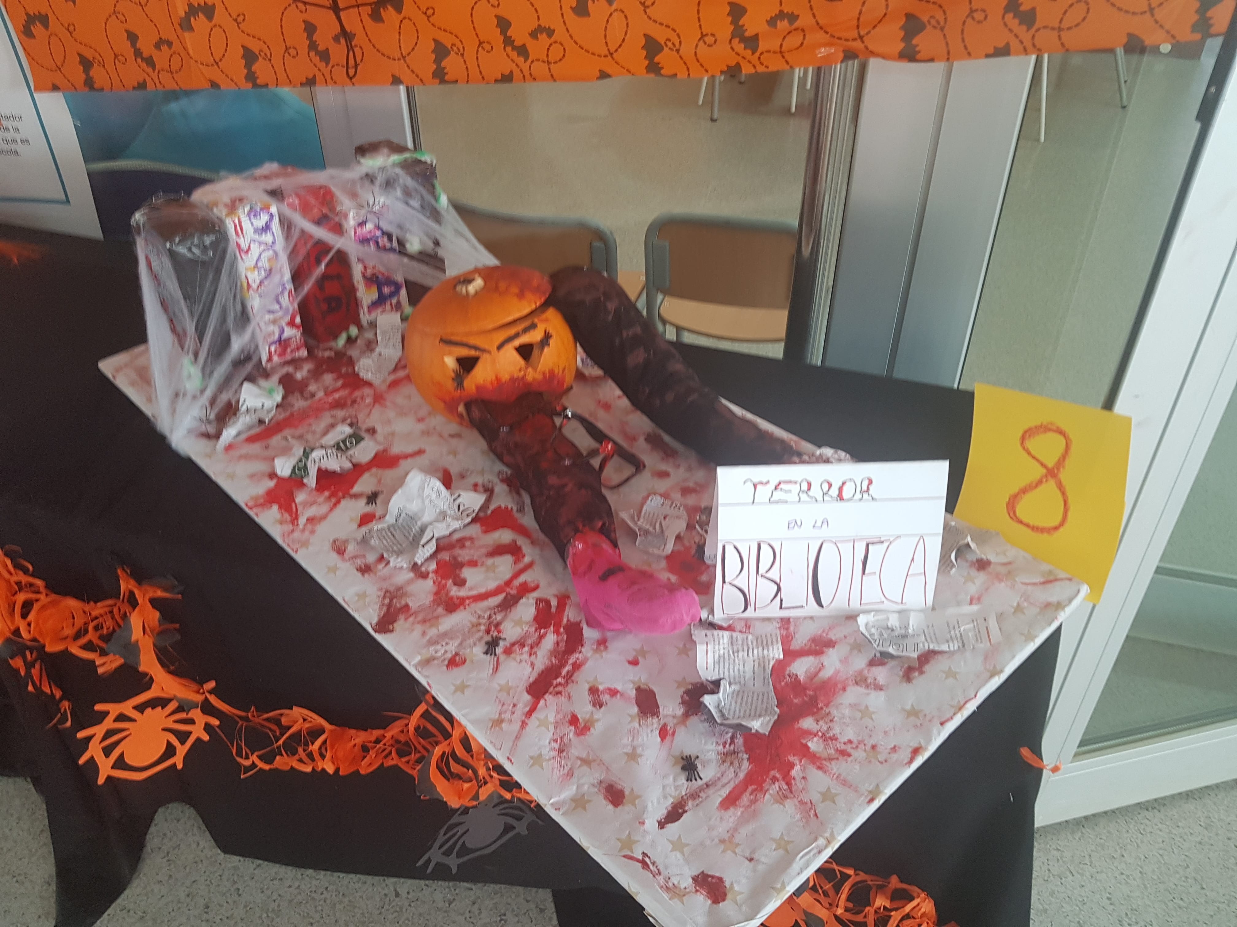 Tercer premi: Carbassa n. 8 amb 42 vots. Es diu : TERROR EN LA BIBLIOTECA, feta per Mar Díaz, Marta Aragonés, Miriam Barco, Verónica Martínez i Carlota Rapado.