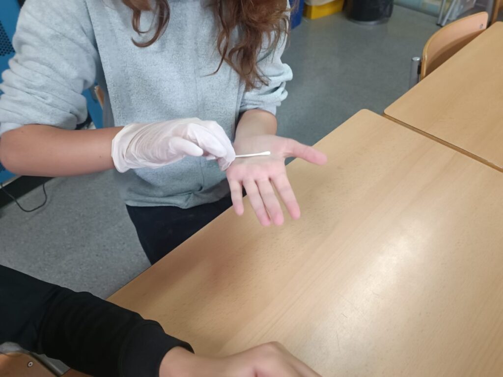Alguns alumnes de primer d’ESO han vingut a fer un taller de ciència a sisè. La pràctica ha consistit en fer una campanya sobre la importància de rentar-se les mans, per tal d’evitar el contagi de malalties causades per microorganismes.