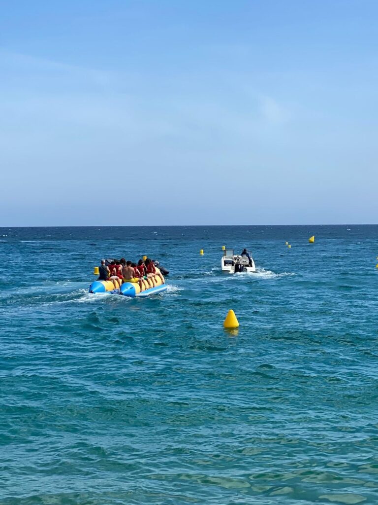 L’alumnat de 6è ja ha iniciat les colònies a la Cala Fenals de Lloret. Aquest matí han fet la prova de nivell de natació i han dinat al bufet lliure de l’hotel, que els ha agradat molt! A la tarda han fet un passeig en barca i l’activitat de l’inflable aquàtic “Crazy ufo”. Han gaudit d’un dia de platja espectacular! Després de sopar, ha sigut l’hora de l’excursió nocturna fins a la dona marinera. Encara els queda piles per molt més!