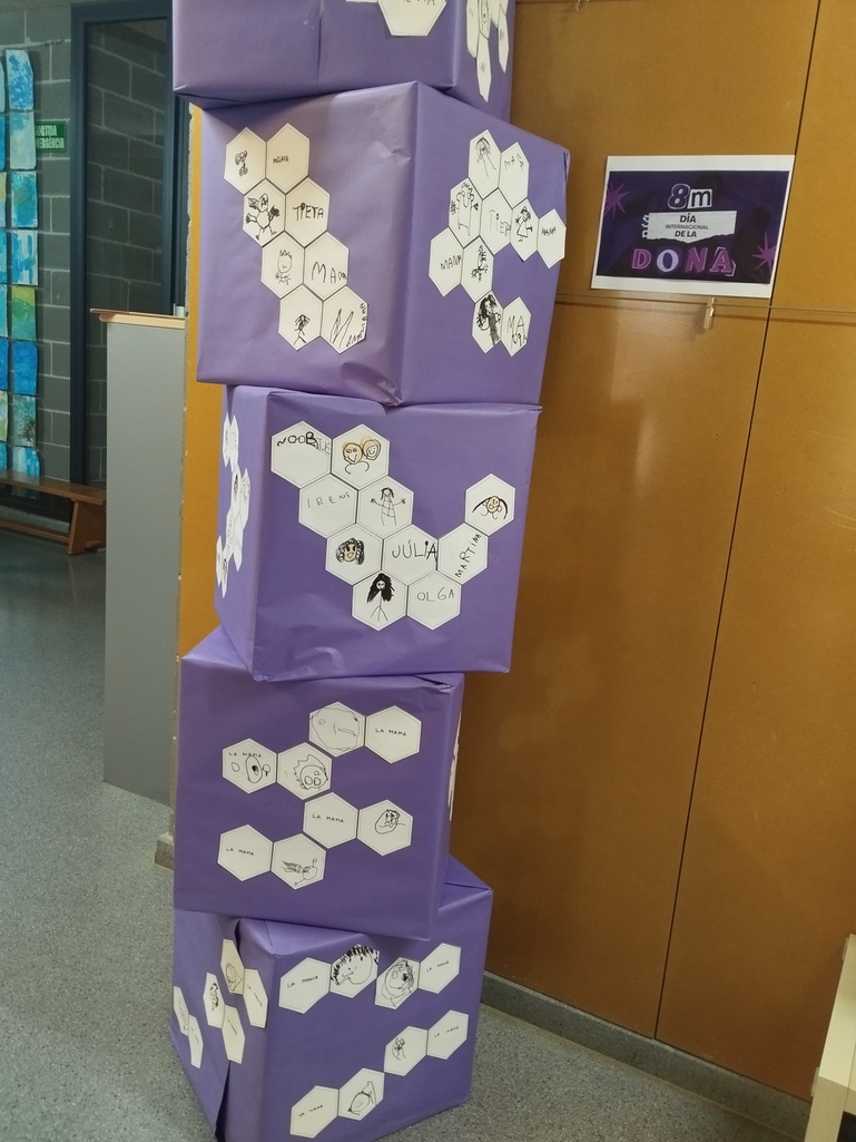 Aquesta setmana, en motiu del Dia Internacional de les Dones, cada infant ha dibuixat i escrit el nom d’una dona important per ell. Amb el treball de cada alumne/a, hem creat una exposició per tota l’escola.