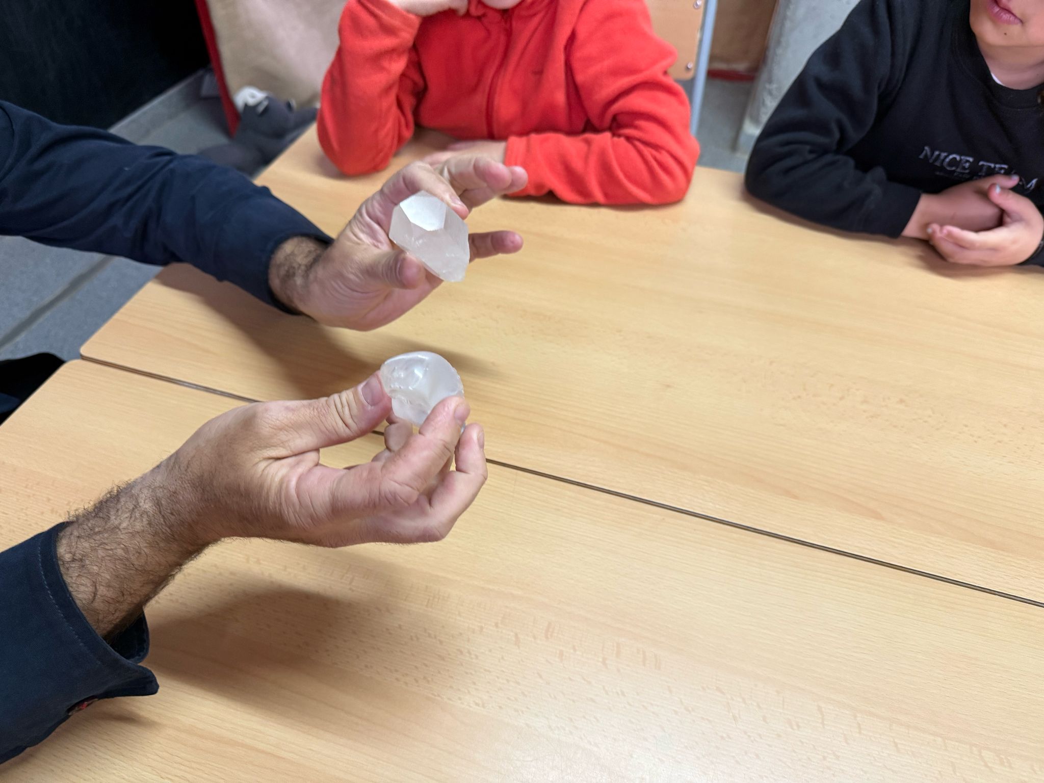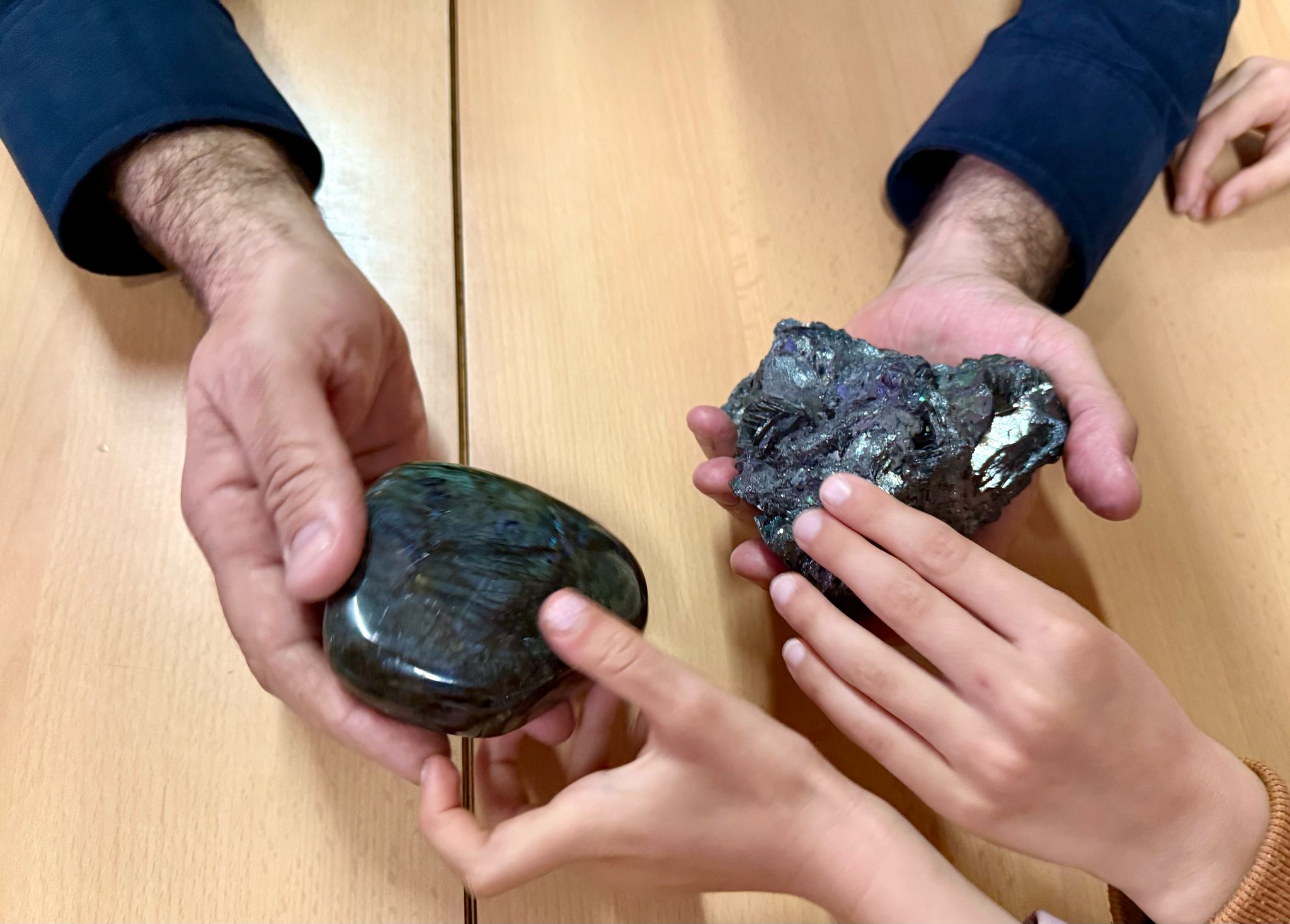 A la classe de 1rB (classe dels minerals), ha vingut un pare de l’escola gemmòleg a explicar coses molt interessants sobre els minerals. Els ha encantat. Moltes gràcies!