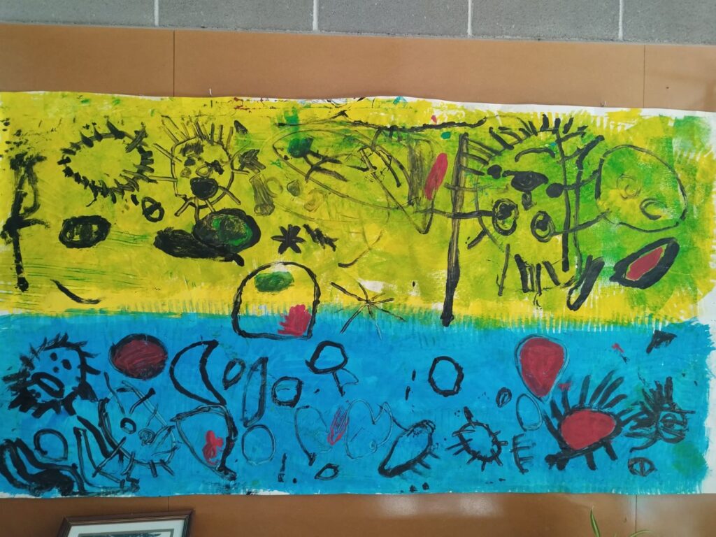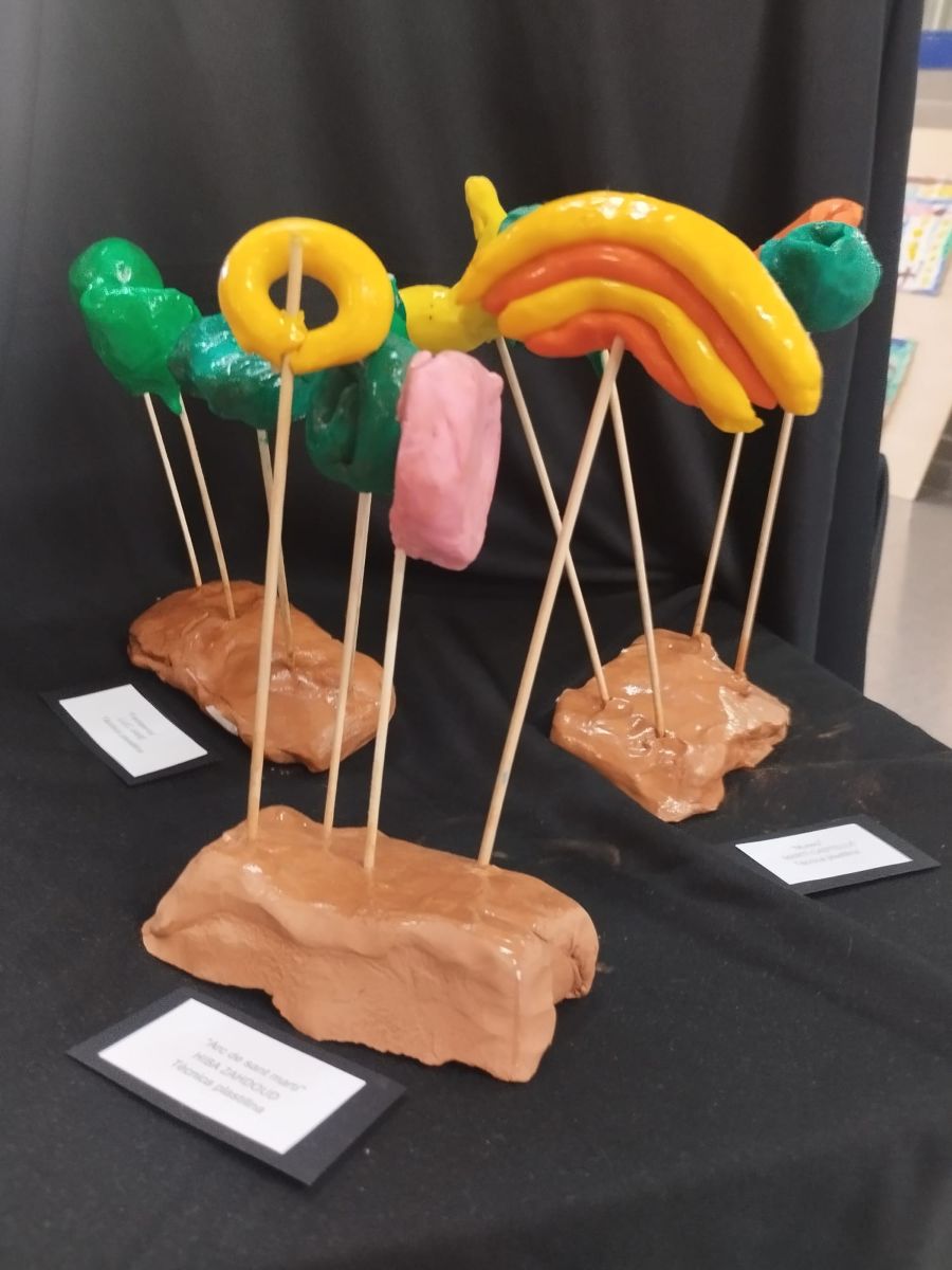 Aquesta setmana les famílies d’educació infantil visiten l’exposició d’art “Vine i ens trobaràs”, on hi ha una mostra de les creacions artístiques d’aquests darrers mesos.