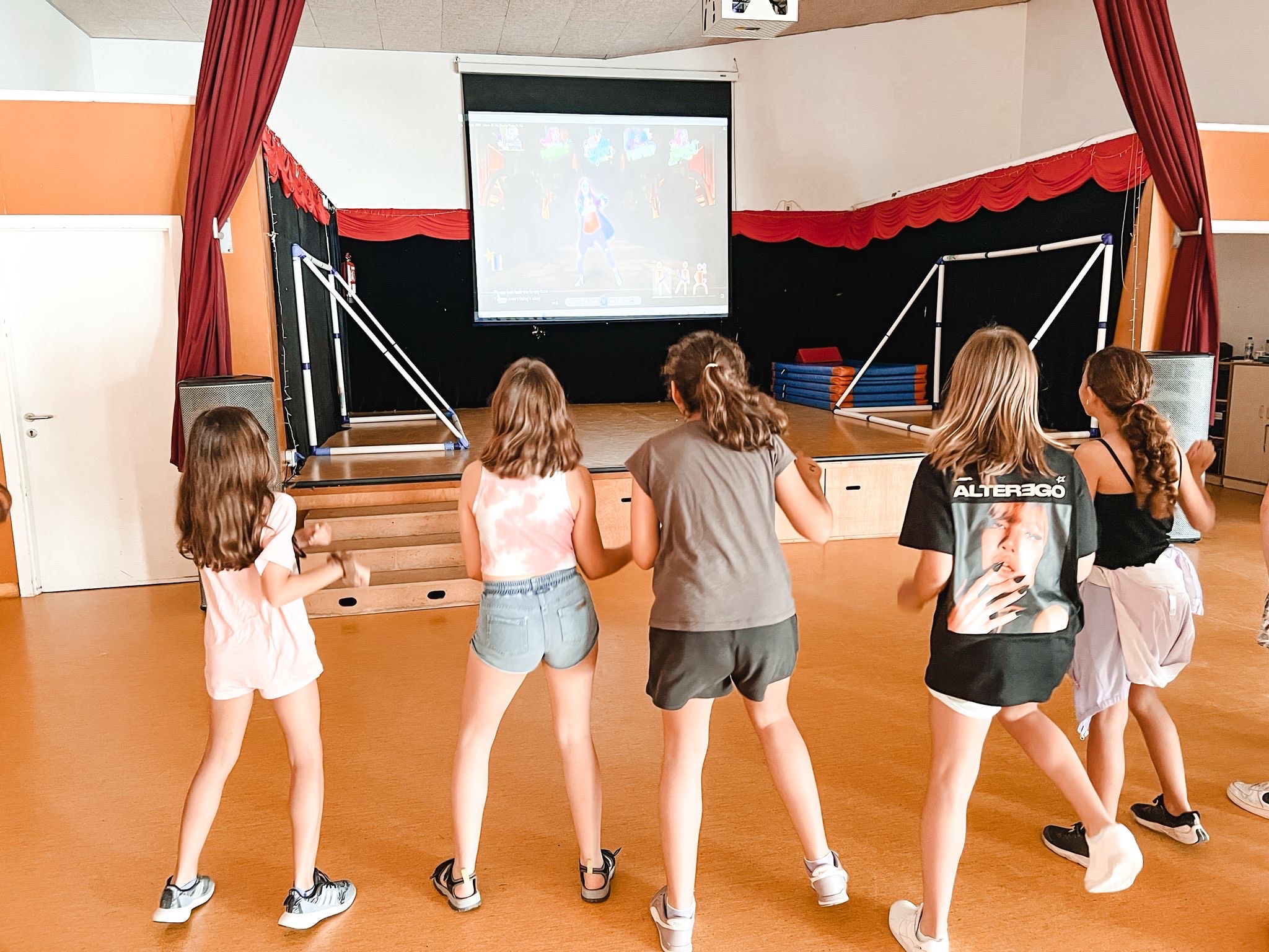 Els més grans han pintat samarretes xulíssimes, han fet karaoke al teatre del poble (gràcies a l’ajuntament!), han participat en diferents jocs i han compartit una activitat especial amb l’alumnat de l’institut. Un gran moment per aprendre i connectar!