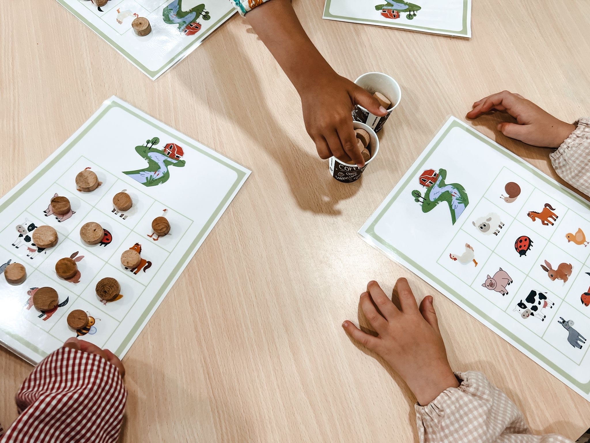 Our youngest learners rotated through 6 fun stations: singing songs, playing memory and word bingo, color games, musical chairs… and even listening to an English story told by a mum. Thank you!