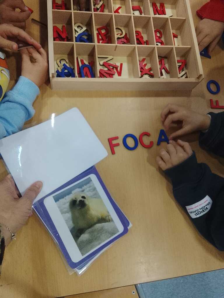 A l’escola, aquest treball es fa de manera coordinada a tot el cicle d’educació infantil, adaptant-se a cada nivell i ampliant-se progressivament a mesura que els infants creixen. A l’estança de les Estrelles d’I4, fomentem aquests aprenentatges cada dia, a través de diferents agrupacions: en gran grup, dedicant uns minuts cada dia a les Rimes en Moviment (Tamara Chubarosky), cançons, dites, converses; en mig grup, un cop per setmana, amb propostes de jocs d’interacció més espontània, en un ambient més tranquil; i en petit grup, també setmanalment, mitjançant la metodologia dels racons d’aula, on cada sessió es fan propostes de joc més dirigides i són avaluades per poder veure el progrés individual al llarg del curs.