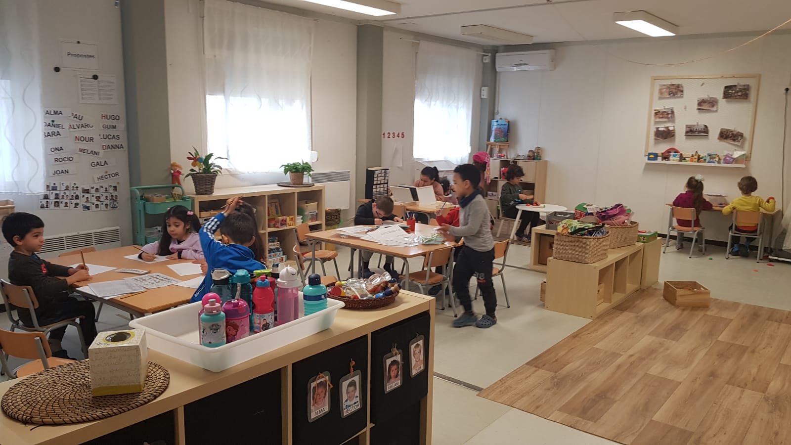 A la taula de mates hem tingut un joc de pius molt divertit, a través del qual havíem de seguir els models donats per construir les figures i seriacions, d’acord també amb la quantitat i grafia marcada i, la taula de lecto, hem estat jugant al quina lletra sona per treballar el reconeixement de les lletres i les paraules.