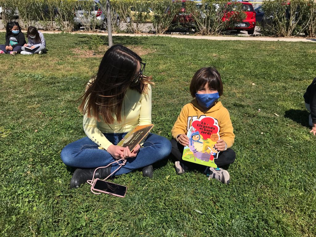 Des que vam començar el curs, els nens i nens de Cicle Inicial C s’han mostrat molt interessats a descobrir les aventures que troben als contes. A la classe, cada dia dediquem una estoneta per llegir en parelles, de manera individual i fins i tot en grup. Ara ja han agafat l’hàbit i estan molt motivats per llegir-se un llibre i així poder recomanar-ho als seus companys i companyes. Per això, vam decidir celebrar Sant Jordi, surtin a la gespa a compartir el nostre conte preferit.