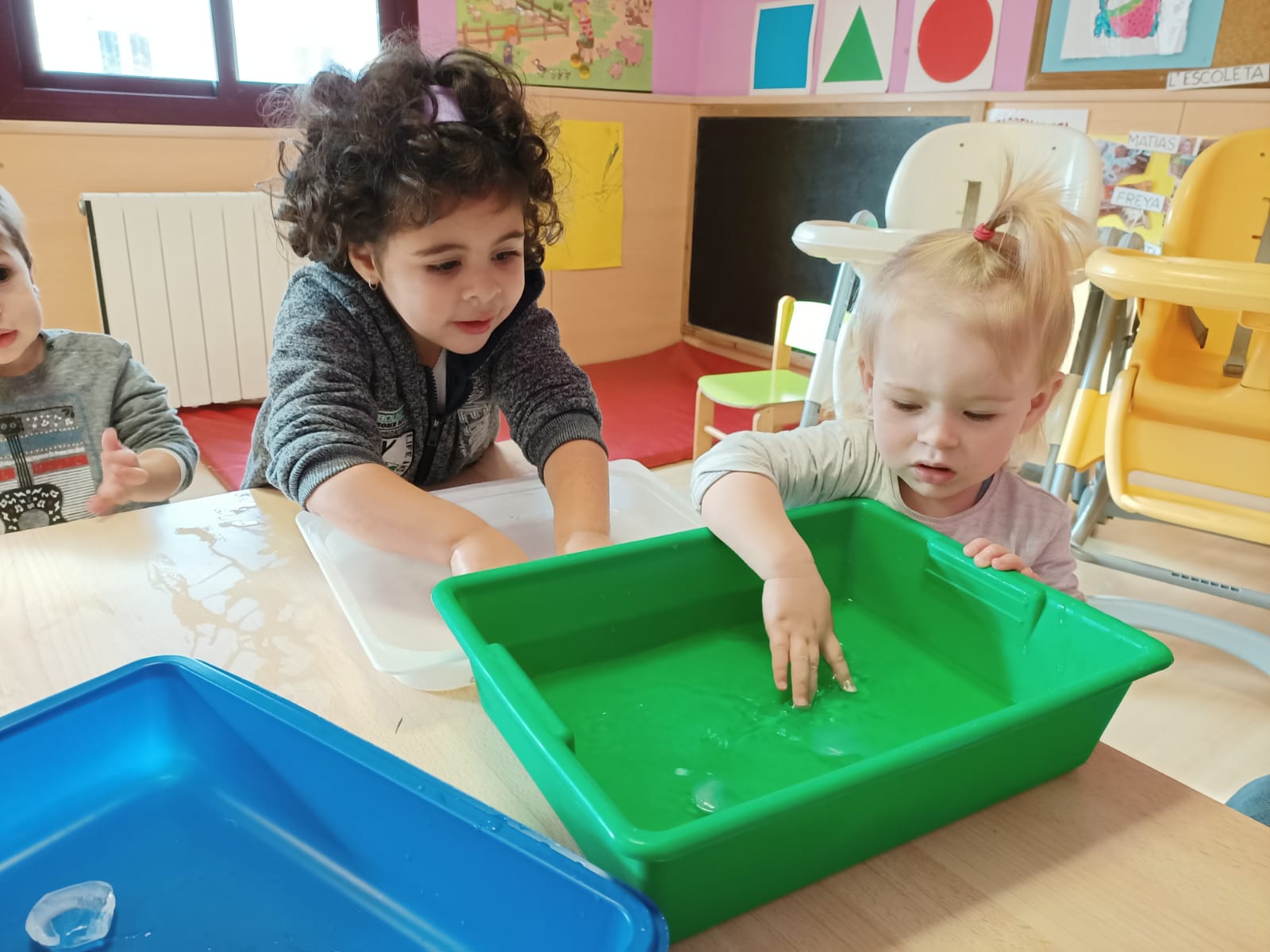 Ens ho vam passar molt bé treballant els sentits (fred i calent), tot jugant amb l’aigua en els seus diferents estats.