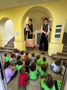 Els nens i nenes d’educació infantil hem anat a veure els gegants de l’Ajuntament, en Bru i la Llum. Hem pogut observar de ben a prop la seva alçada, la seva vestimenta i on es posen les persones que els porten a ballar.