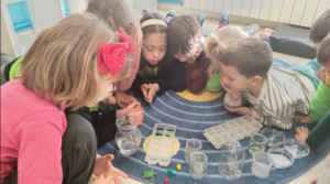 Els nens i nenes d’I4 i I5, aquests dies al fer tant fred, vam observar que al pati hi havia gel, llavors a l’aula van sorgir diferents preguntes: