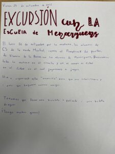 El lunes 26 de septiembre los alumnos de Ciclo Superior iremos al Pum Track del pueblo para pasar una mañana con los alumnos de la escuela de Menàrguens. Por este motivo hemos escrito un texto a nuestras familias informando sobre la excursión.
